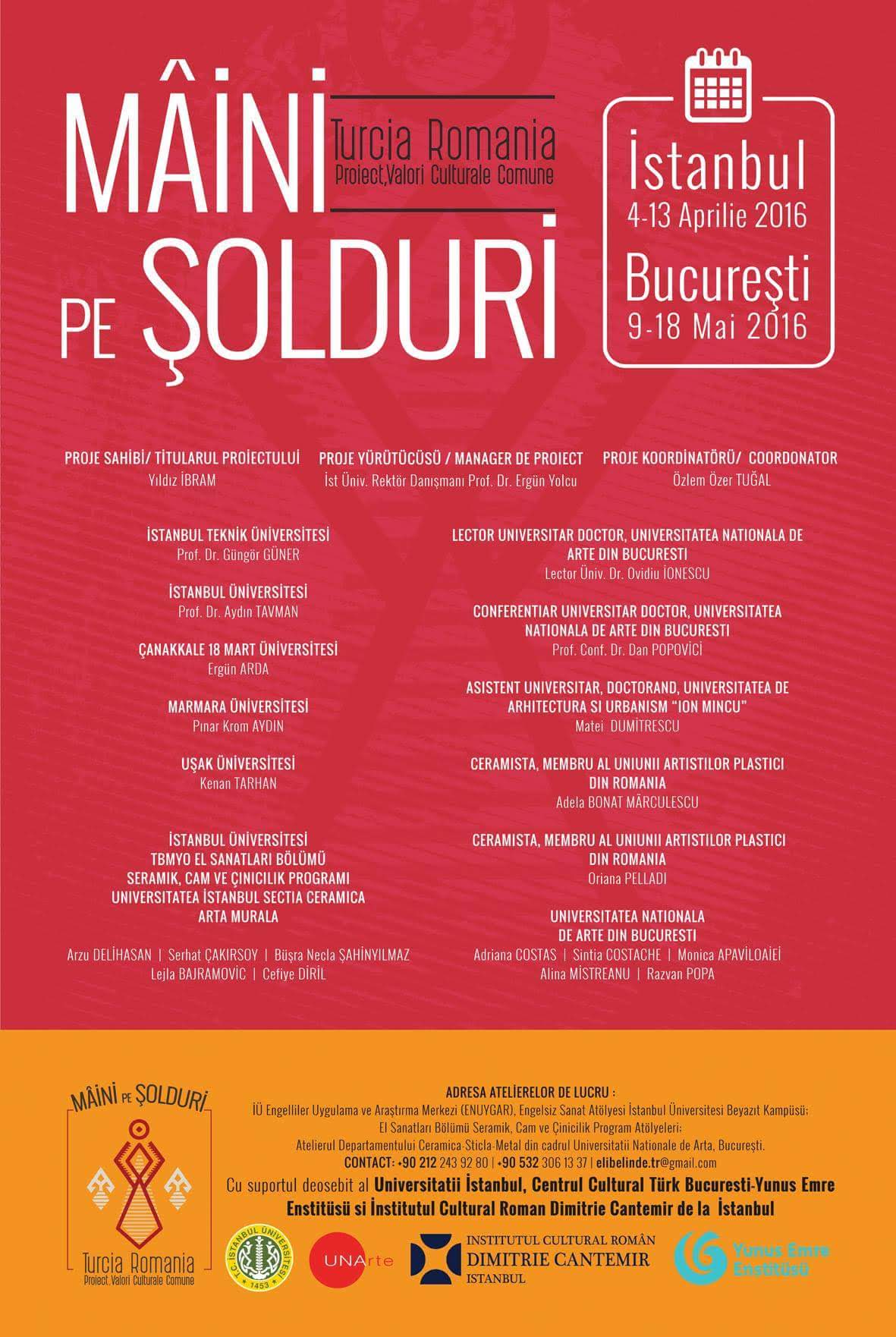 Proiect cultural România- Turcia, un simpozion de ceramica organizat ın anul 2016 în parteneiat cu Institutul Cultural Român din Istanbul, İnstitutul Cultural Turc Bucureşti, Universitatea Nationala de Arte Bucureşti şi Universitatea Istanbul. La Bucureşti am avut parte de sustinerea deosebita a Ambasadei Republicii Turcia din București, Universităţii din București, Facultatea de Istorie, Universităţii Naţionale de Muzică București şi Atelierul de creaţie – Art Time